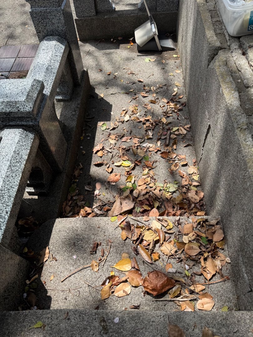 枯葉がいっぱいあり、清掃作業しました。